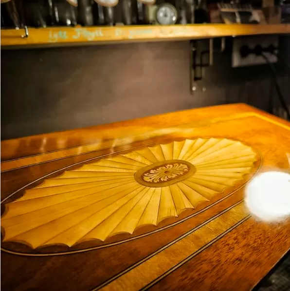Votre restauratrice de piano à Verel-de-Montbel vous partage aujourd'hui la magie d'un vernis tampon, révélant la beauté de la matière dans sa profondeur. La marqueterie particulière de cet Erard de 1904 a été conçue dans le choix du veinage des essences de bois pour donner une impression de relief en trompe l'oeil.